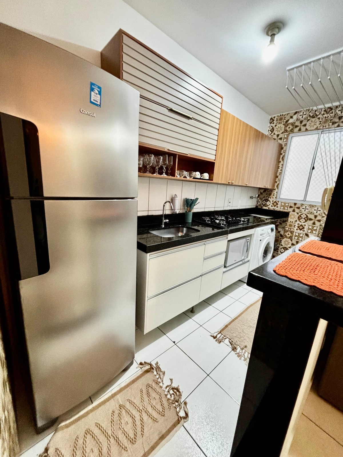 Rilassati in questo spazio tranquillo ed elegante. Appartamento per chi cerca tranquillità e una buona posizione. L'appartamento si trova nel quartiere Morada de Laranjeiras, a 950 metri dall'ospedale Jaime Santos Neves, a 6 minuti dall'ospedale Dorio Silva, a 16 km dall'aeroporto di Vitoria e vicino alla spiaggia di Manguinhos (9 minuti). Il centro commerciale più vicino, Montserrat, dista 4 km. Il mio alloggio non ha bisogno di un rilevatore di monossido di carbonio.