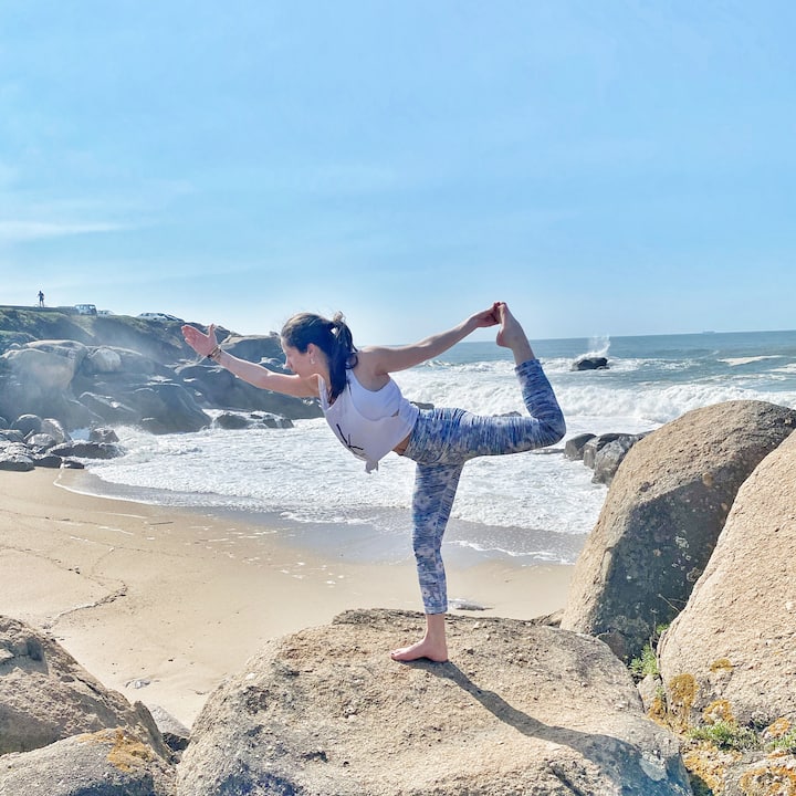 Una passeggiata fino alla spiaggia, seguita da una sessione di yoga di fronte all'oceano.