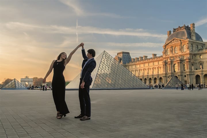 Servizio fotografico in 5 punti in 2 famosi luoghi: Torre Eiffel e Piramide del Louvre