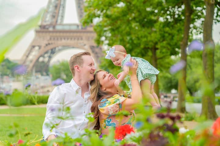 La tua famiglia può scegliere un luogo personalizzato a Parigi come Eiffel, Louvre, Notre-Dame, Arco di Trionfo, Lussemburgo, Montmarte, ecc.