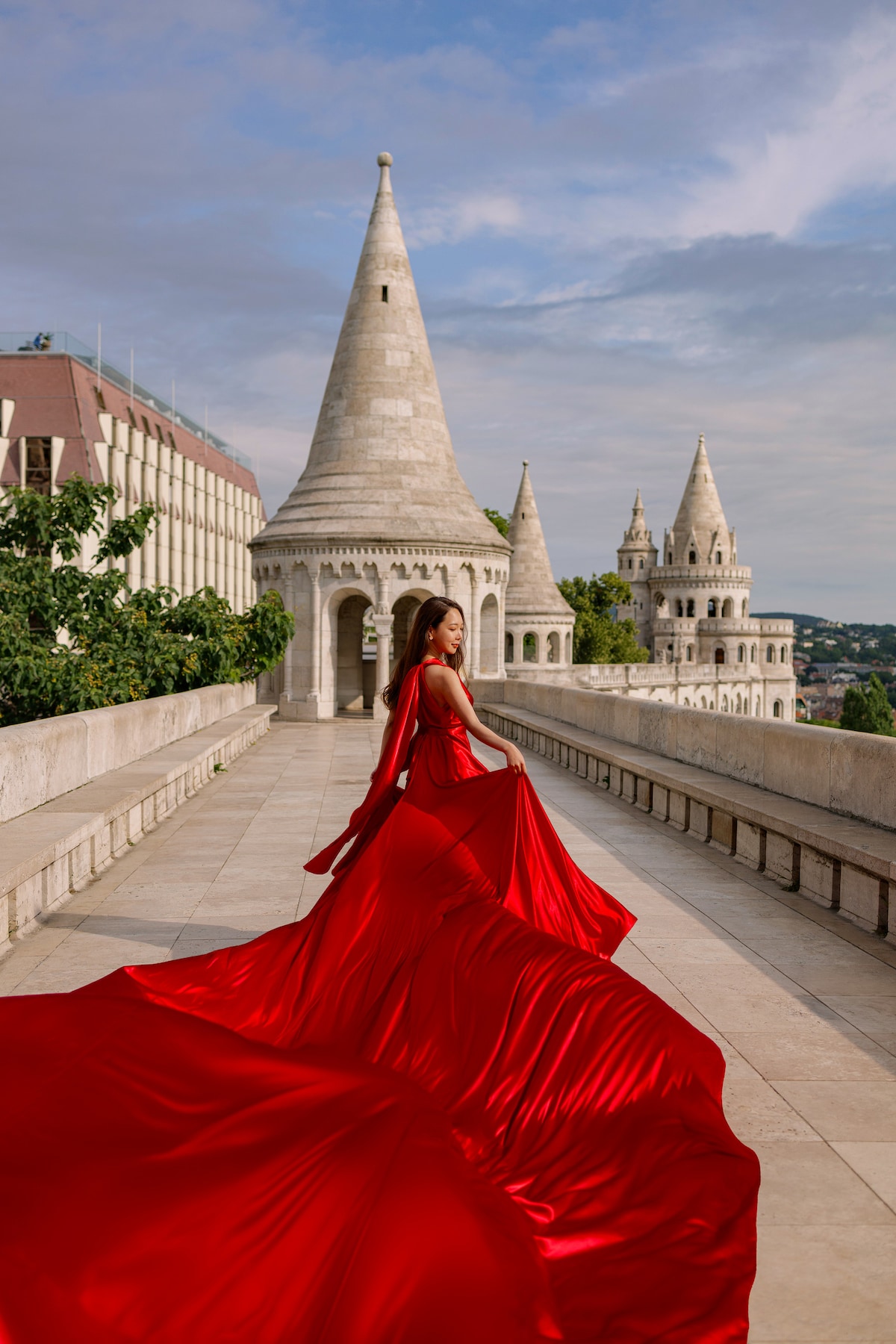 Ottieni 100 foto non modificate entro 24 ore da un servizio fotografico con un abito rosso fiammante svolazzante e un assistente personale che aiuta a farlo svolazzare.