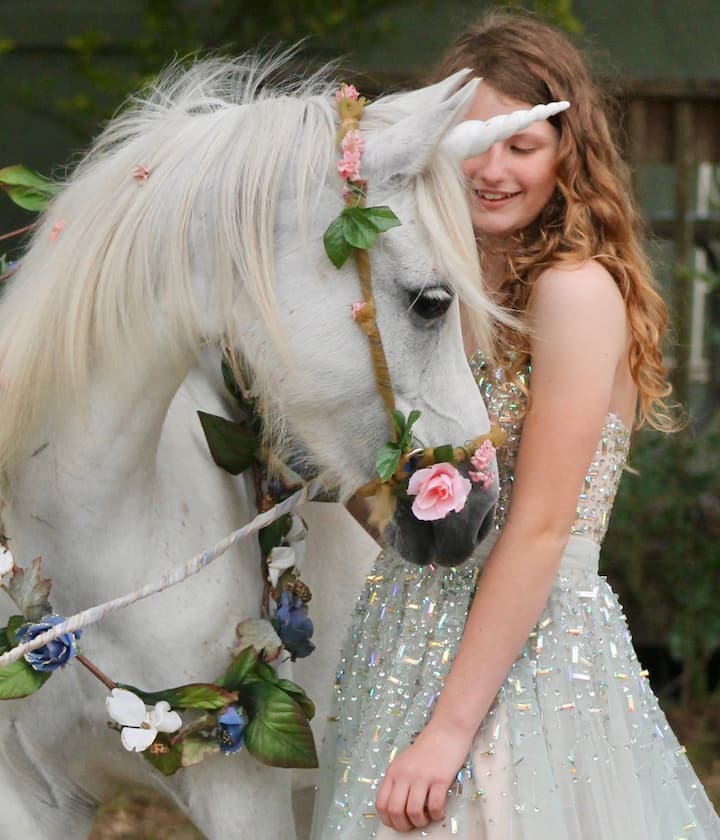 Sono specializzata in fotografia ritrattistica e ho creato un'offerta "unicorno" con cavalli da salvataggio.