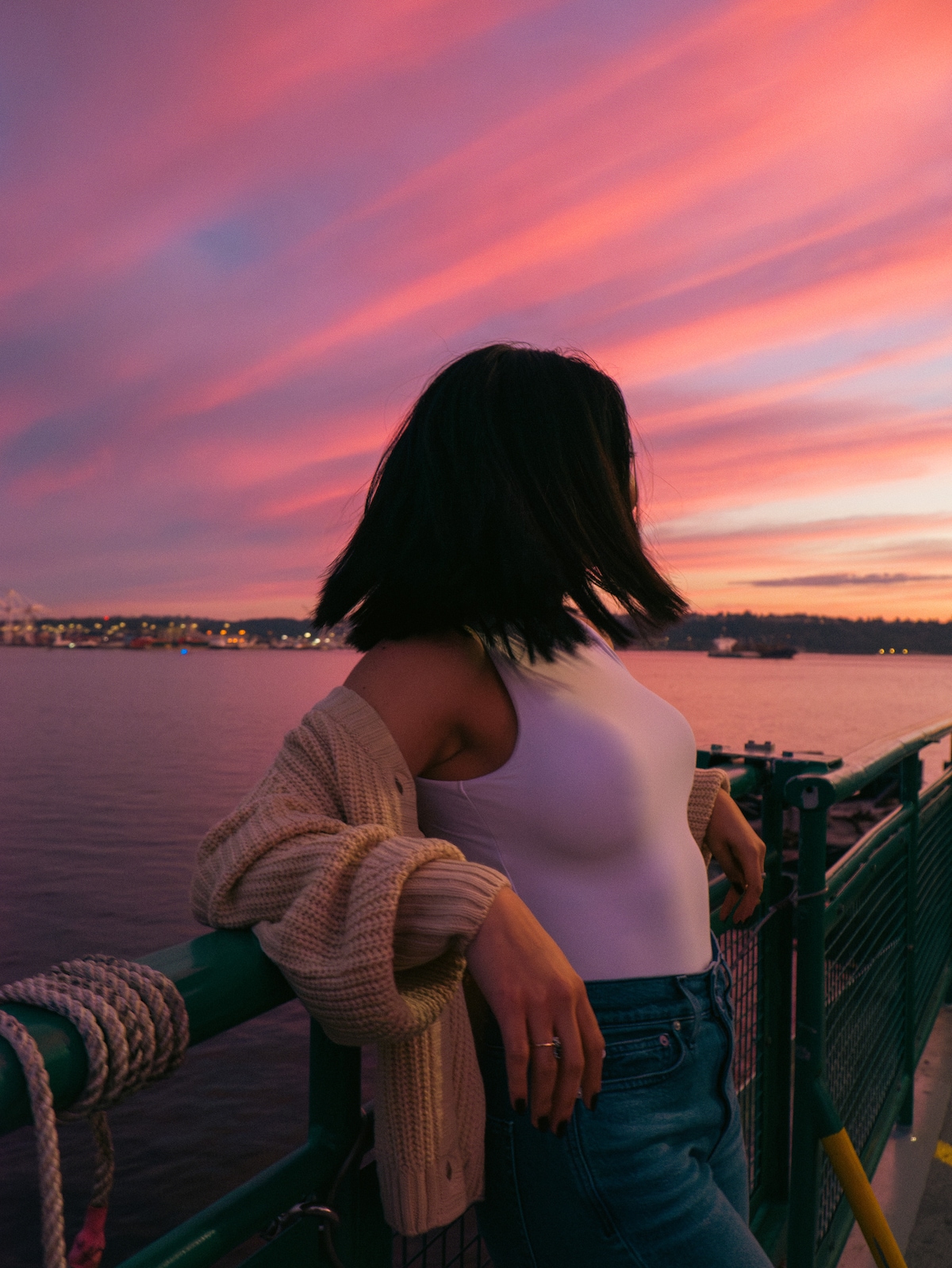 Questa breve sessione fotografica si trova vicino al terminal dei traghetti di Seattle. Decidi tra uno stile drammatico, suggestivo o soleggiato. Vengono forniti un consiglio per l'umore e la posa.