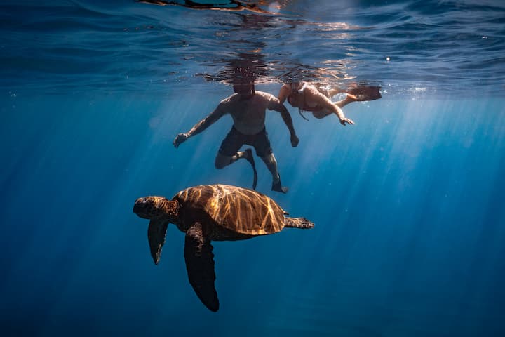 Questo pacchetto include un servizio fotografico subacqueo per chi pratica snorkeling, apnea e immersioni. La sessione è adatta a gruppi da 1 a 6 persone. Ogni ora aggiuntiva costa 300 USD. Il luogo d'incontro è Mala Wharf a Lahaina.