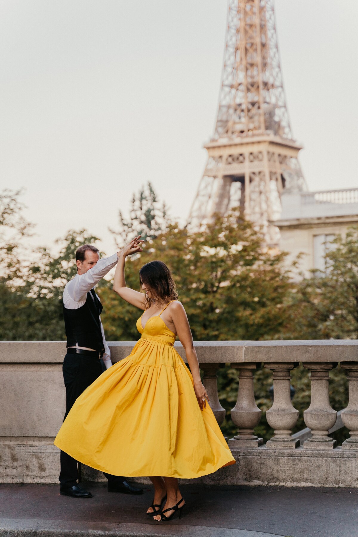 Servizio fotografico personalizzato in uno o due luoghi iconici come la Torre Eiffel, il Louvre o Montmartre.