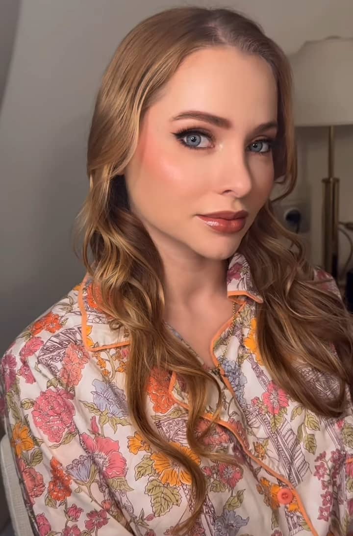 Goditi un'applicazione completa del trucco per il viso con fondotinta, fard, contouring, ombretto, ciglia finte e rossetto.