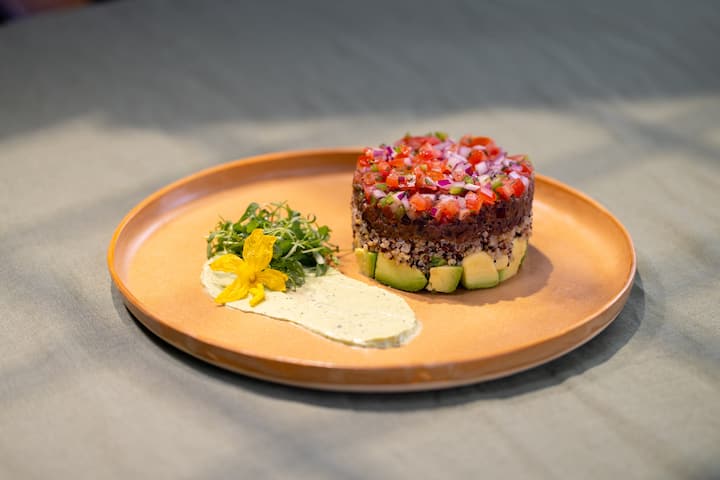 Una cena raffinata con ingredienti locali e di stagione e una presentazione elegante. Puoi scegliere tra diversi stili di menu: messicano moderno, ricco di piante, pescetariano o completamente senza glutine. Dopo la prenotazione, invierò opzioni di menu curate in modo che tu possa selezionare quella che si adatta alla tua serata e alle tue preferenze.