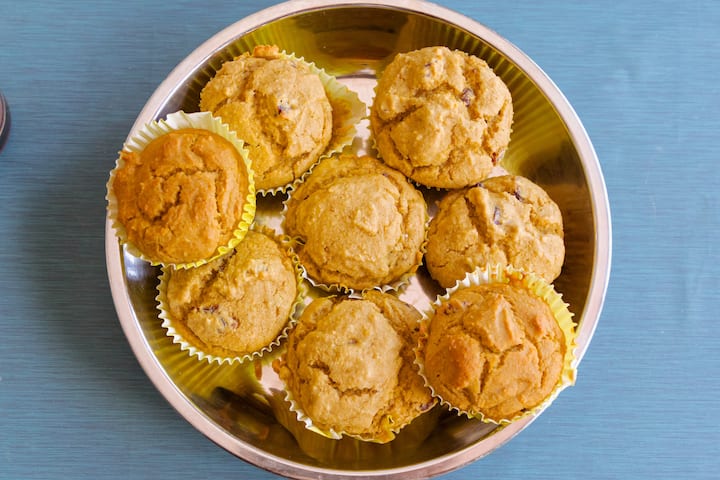 Il menu include zucca butternut ripiena di funghi e cipolle, insalata di cavolo con aglio, cetriolo, peperoncino e sedano, e mela caramellata per dessert.
