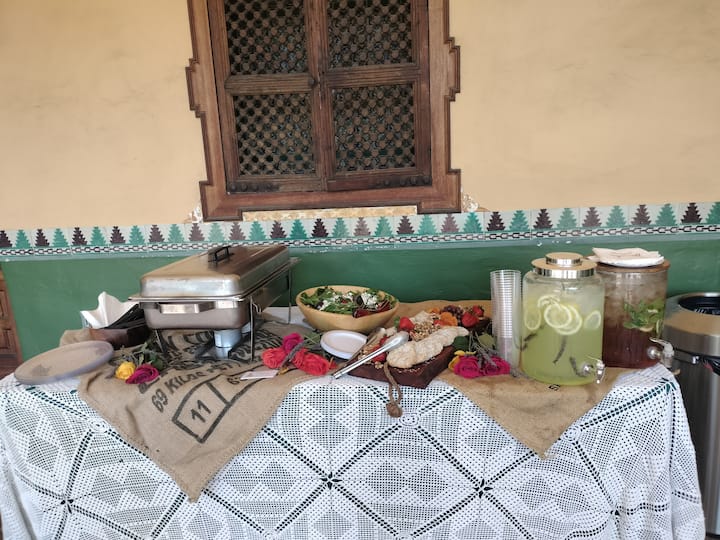Inizia la giornata con un brunch caldo e salutare con pane rustico, frittata in stile missione e frutta fresca.
