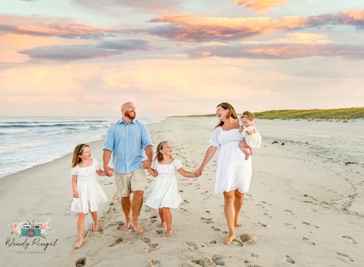 Una sessione di ritratto di famiglia sulla spiaggia più breve, con 15 immagini modificate, consegnate in una galleria online con una versione stampata.