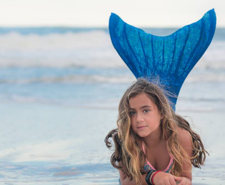 Sessione fotografica in costume da sirena o da principessa, in spiaggia o in studio, con molti abiti e code di sirena tra cui scegliere.