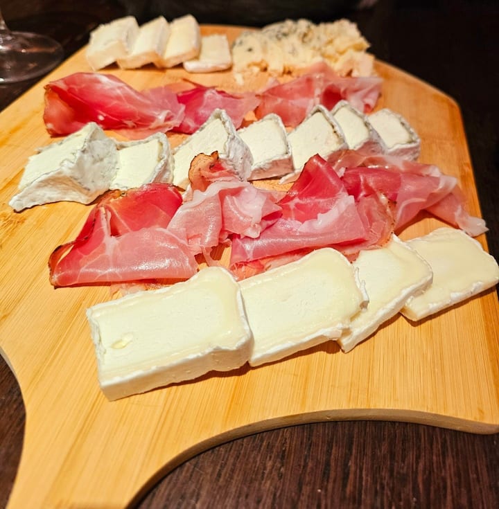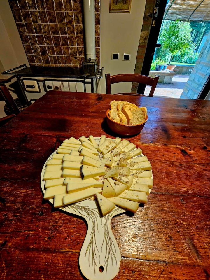 Selezione di salumi tipici toscani: prosciutto, salame, sbriciolona e formaggi di pecora e capra nella zona del Chianti.