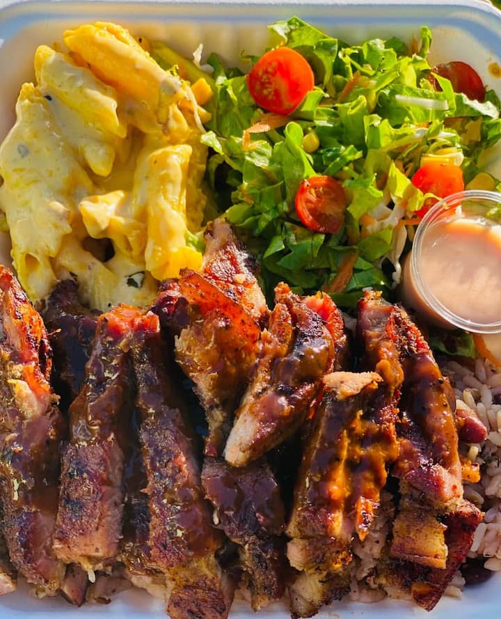 Assapora una cena caraibica di lusso con salmone marinato, coda di bue brasata, gamberi al curry e molto altro. Include configurazione, servizio e pulizia. Opzione self-service con articoli monouso disponibili; i prezzi si adeguano di conseguenza. Server disponibili a un costo aggiuntivo. Minimo 5 ospiti.
