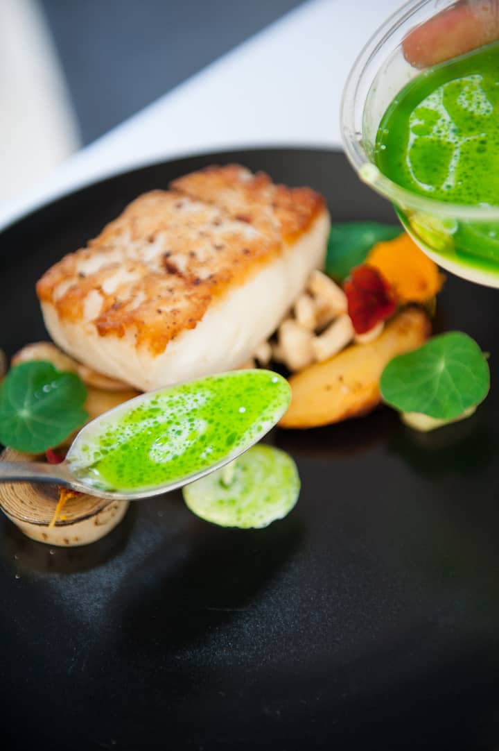 Pesce di stagione | Funghi | Patate | Porri | Vinaigrette alle erbe e latticello