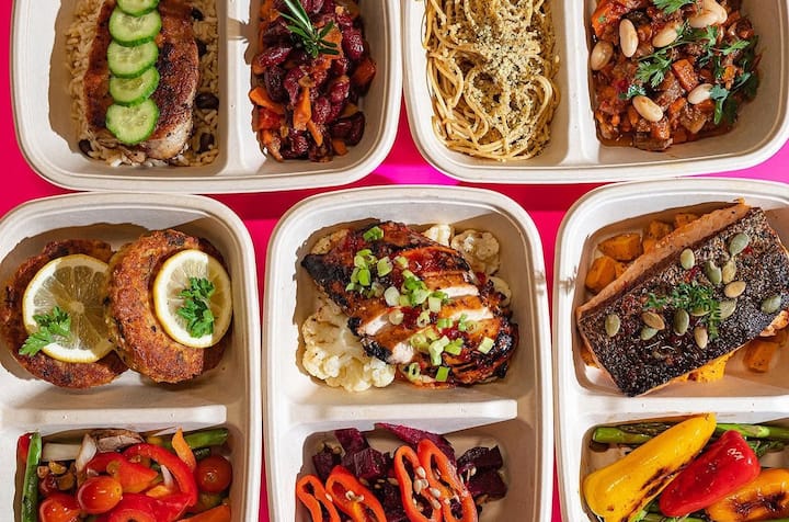 Preparazione di pasti pronti con ingredienti biologici, di origine vegetale e di animali allevati al pascolo.