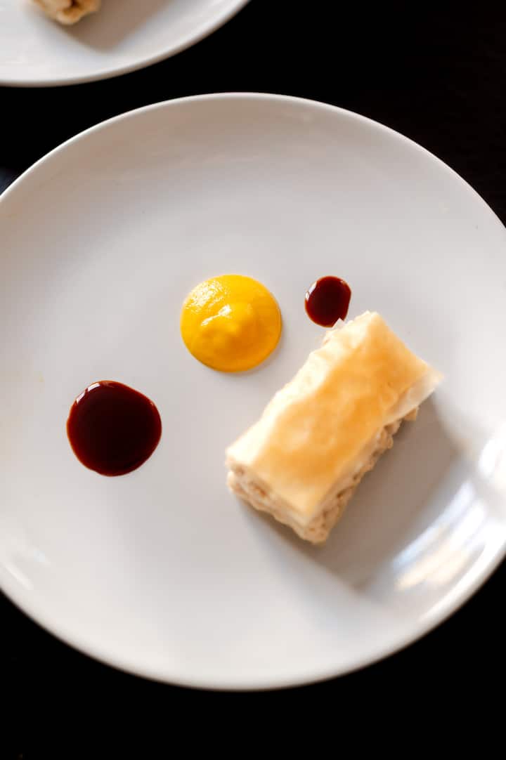Confit di merluzzo e riduzione di pomodoro affumicato con menta