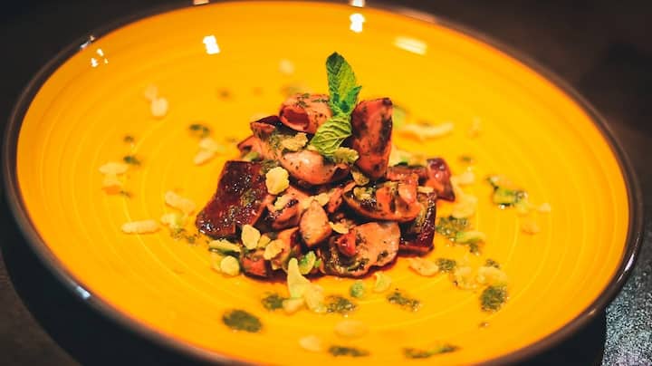 Goditi una varietà di snack di strada con sapori freschi ed esotici, dagli involtini vietnamiti ai tacos di mais con pancetta e capesante. Per finire, un bicchiere di gelato al mandarino con torta di carote e spuma di cocco e cioccolato bianco.