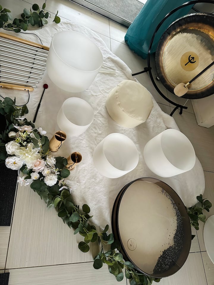 Il nostro tempo insieme inizia con una meditazione guidata di 5 minuti per aiutarti a concentrarti sul momento. Da lì, sarai guidato in un viaggio sonoro immersivo di 50 minuti, appositamente curato per favorire un profondo riposo e rinnovamento. Concludiamo con un momento di silenzio per integrare delicatamente l'esperienza. La mia voce ti guiderà indietro prima di concludere con un momento di gratitudine.