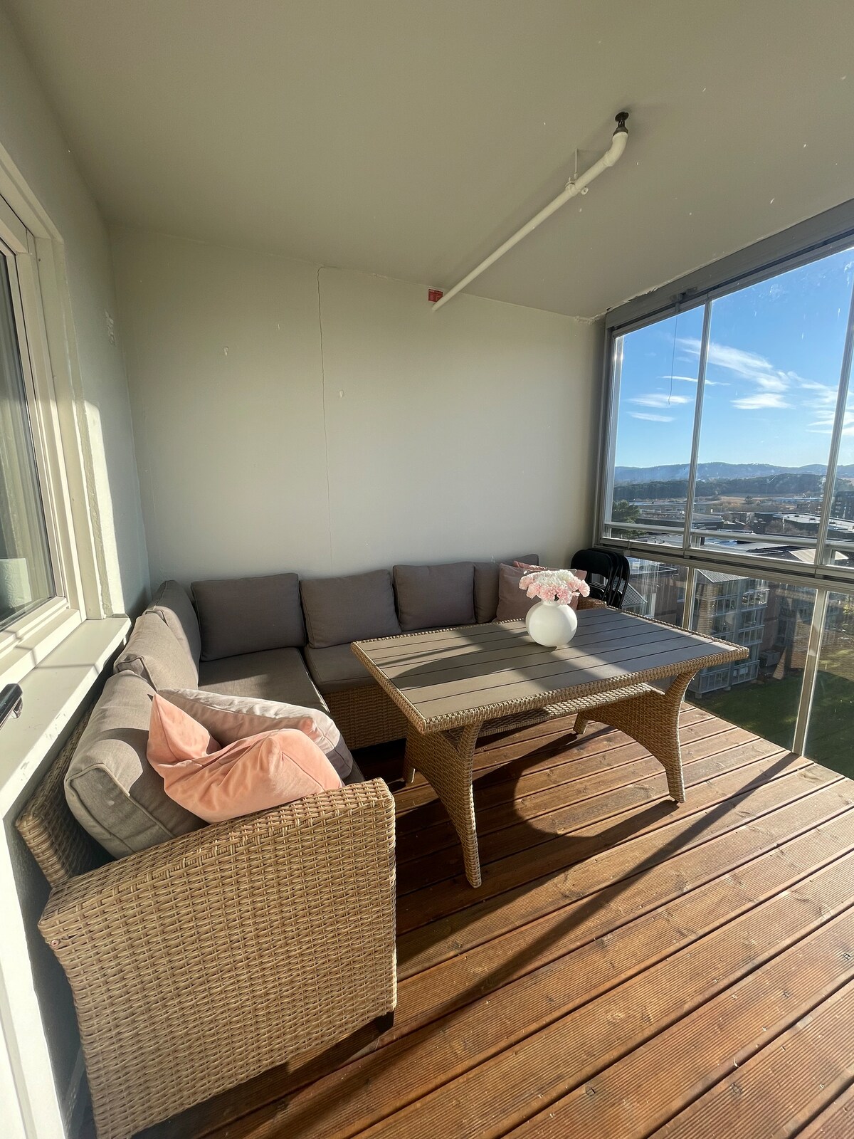 Appartamento al piano interrato di circa 52 mq. Ingresso privato. Cucina/soggiorno, bagno, toilette, due camere da letto, guardaroba e corridoio. Standard semplice e diretto con lavastoviglie, lavatrice e pompa di calore. Magnifiche viste su Flakkfjorden e sul canale navigabile dal soggiorno e dalla camera da letto. Ampia terrazza riparata con vista sui fiordi. Parcheggio. Possibilità di ricarica auto elettrica su prenotazione.