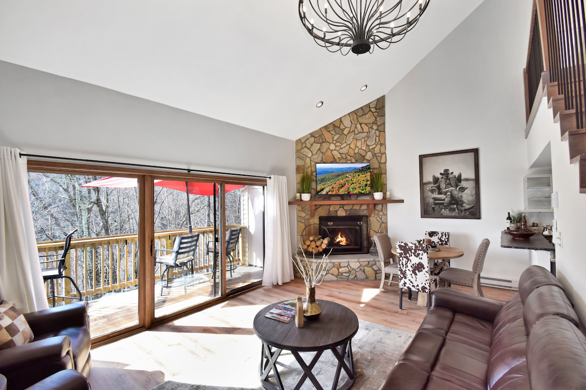 Nuovi lavori di ristrutturazione appena completati nel 2025! Il nostro monolocale si trova proprio di fronte allo Sugar Mountain Ski and Golf Resort. Il campo base invernale perfetto! Ciò che la gente ama: ✔ A pochi passi o in auto dal Sugar Ski and Golf Resort Vista sulle piste ✔ invernali ✔ Nuovo stile e arredi moderni e rinnovati ✔ Accogliente caminetto a gas con telecomando ✔ A due passi da negozi di alimentari, negozi e ristoranti ✔ Letto king size bed ✔ Mini split aria condizionata e calore ✔ Lavatrice/asciugatrice in unità ✔ Terrazza rilassante di fronte al torrente