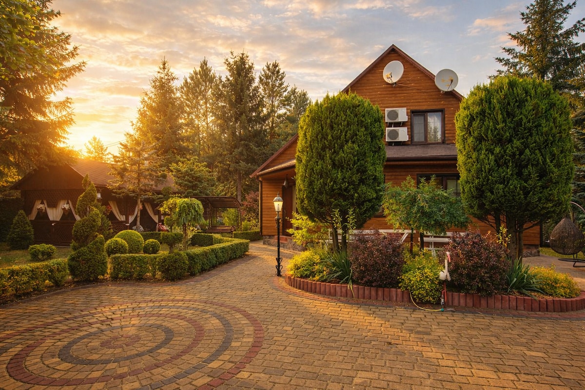 Prenditi una pausa dal trambusto di questo luogo unico e accogliente. Silenzio? Tranquillità? Harmony... Ampia area verde, pini, canto degli uccelli... La casetta si trova vicino al lago. Tramonti incredibili e una fantastica vacanza. Il cottage Dzen ha 3 camere da letto, una cucina e una meravigliosa spaziosa terrazza per una vacanza profonda con amici e familiari.