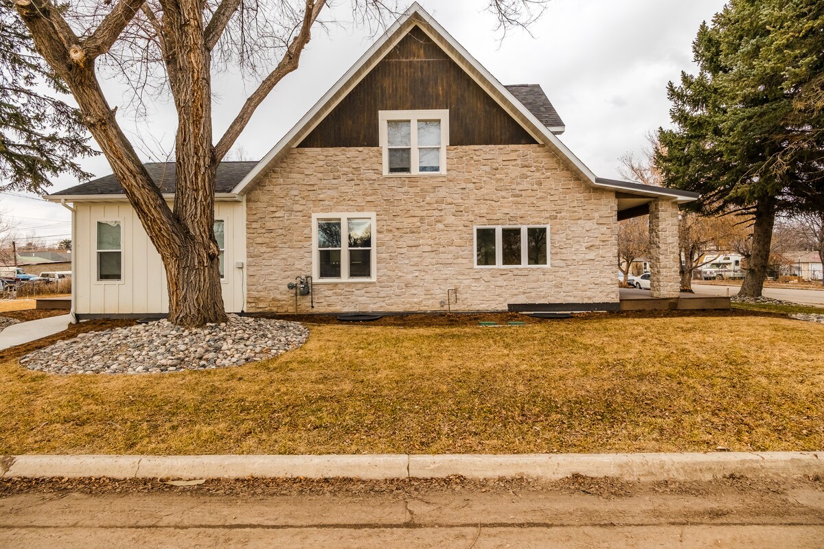 We welcome you to our charming 2-bedroom home, pleasantly located in the heart of Sheridan, WY. A short 5-minute drive to downtown, M & M Ice Rink, Fairgrounds, and less than 20 minutes to the Equestrian Center. This home has a warm and modern design with newly remodeled kitchen, 2 bedrooms (queen beds), quaint office, newly renovated bathroom, and room for the portable crib (provided). Our favorite spot to hang out is on the patio; fenced, covered, grill, and ample space to lounge and relax.
