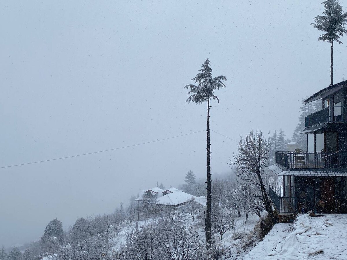 Glamoreo, a solo 1 ora da Shimla. Splendidi interni in legno di noce, inclusi tutti i mobili. Vasca da bagno in legno all'aperto, perfetta per immergersi nell'aria fresca di montagna. L'area circostante è aperta e spaziosa. Puoi passeggiare, ammirare le viste panoramiche e farti un'idea della vita rurale. Tutto qui è biologico, dal cibo ai prodotti caseari. Se non hai voglia di pasti fatti in casa, ci sono bar e ristoranti a soli 3–4 km di distanza, e puoi visitarli o ricevere cibo a domicilio