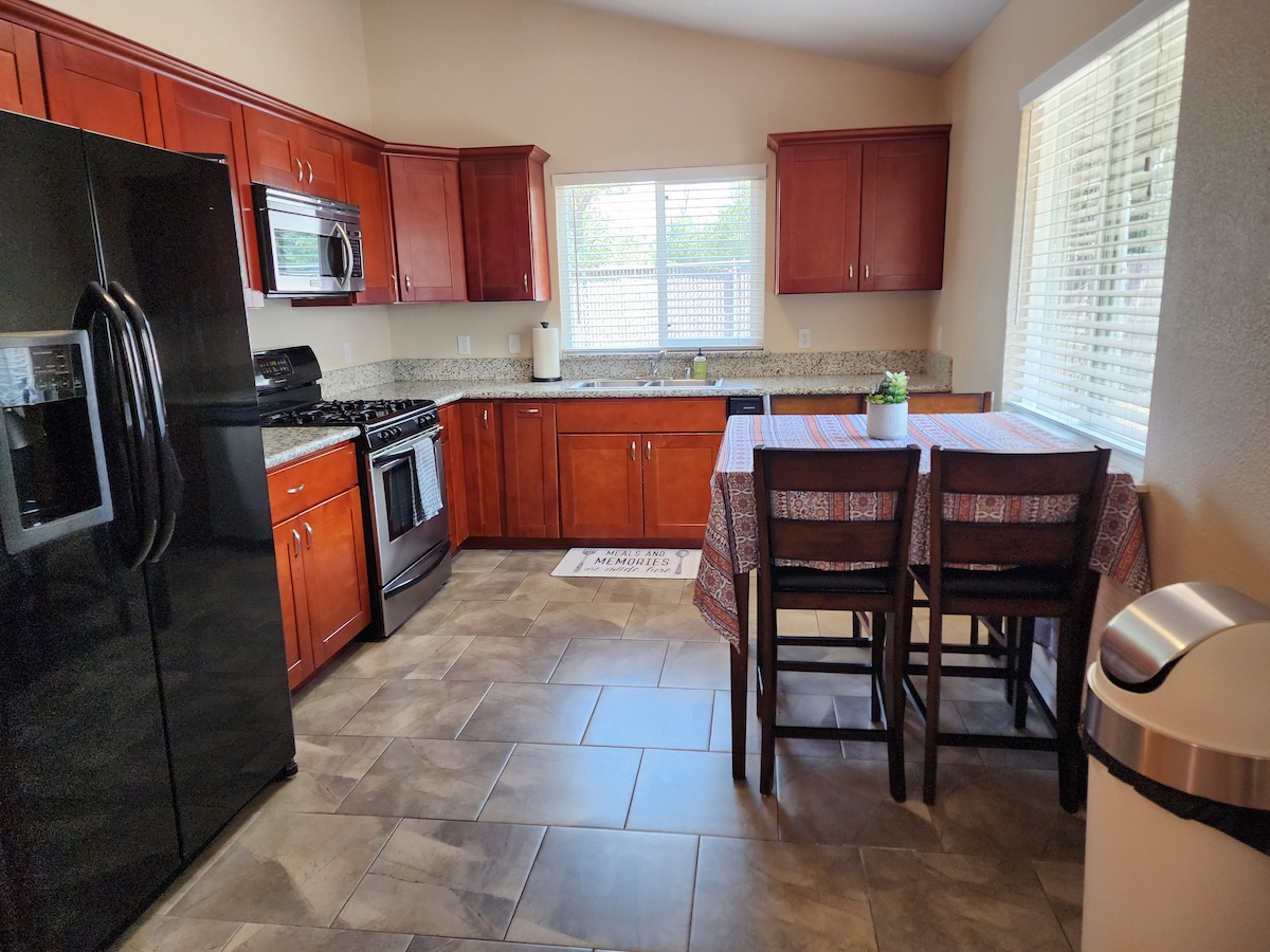 In città, ma sembra di essere in campagna! Ampio parcheggio privato e sicuro e patio con braciere. Ogni comfort considerato con ampie camere da letto matrimoniali grandi. Angolo cottura personalizzato con elettrodomestici in acciaio e piani di lavoro in quarzo. Caminetto a gas lineare, focolare in cemento personalizzato, HDTV da 55"con audio surround e armadietti integrati. Doccia in piastrelle di grandi dimensioni con lucernario e acqua calda senza serbatoio. Riscaldamento centralizzato e caricabatterie per veicoli elettrici A/C. Facile ingresso con tastierino. Vicino a I-5 e CA-44. Casa senza animali domestici. COR Permit SDD-2025-00074