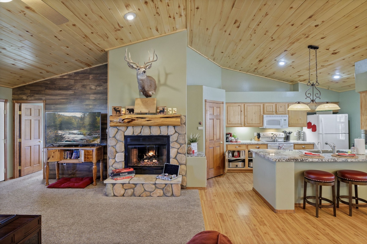 BENVENUTO nel tuo accogliente rifugio. Questa è la vacanza PERFETTA! Un elegante alloggio con 2 camere da letto e 2 bagni, un caminetto interno, un garage per 2 auto e un patio anteriore e posteriore! Nuovissima costruzione, realizzata nel 2022! Include inoltre: * Garage per 2 auto * La planimetria suddivisa consente privacy * Comode aree salotto per stare insieme a chiacchierare, guardare la TV e giocare * Goditi il patio coperto con vista sulla foresta nazionale È la fuga perfetta per chiunque o per tutta la famiglia.