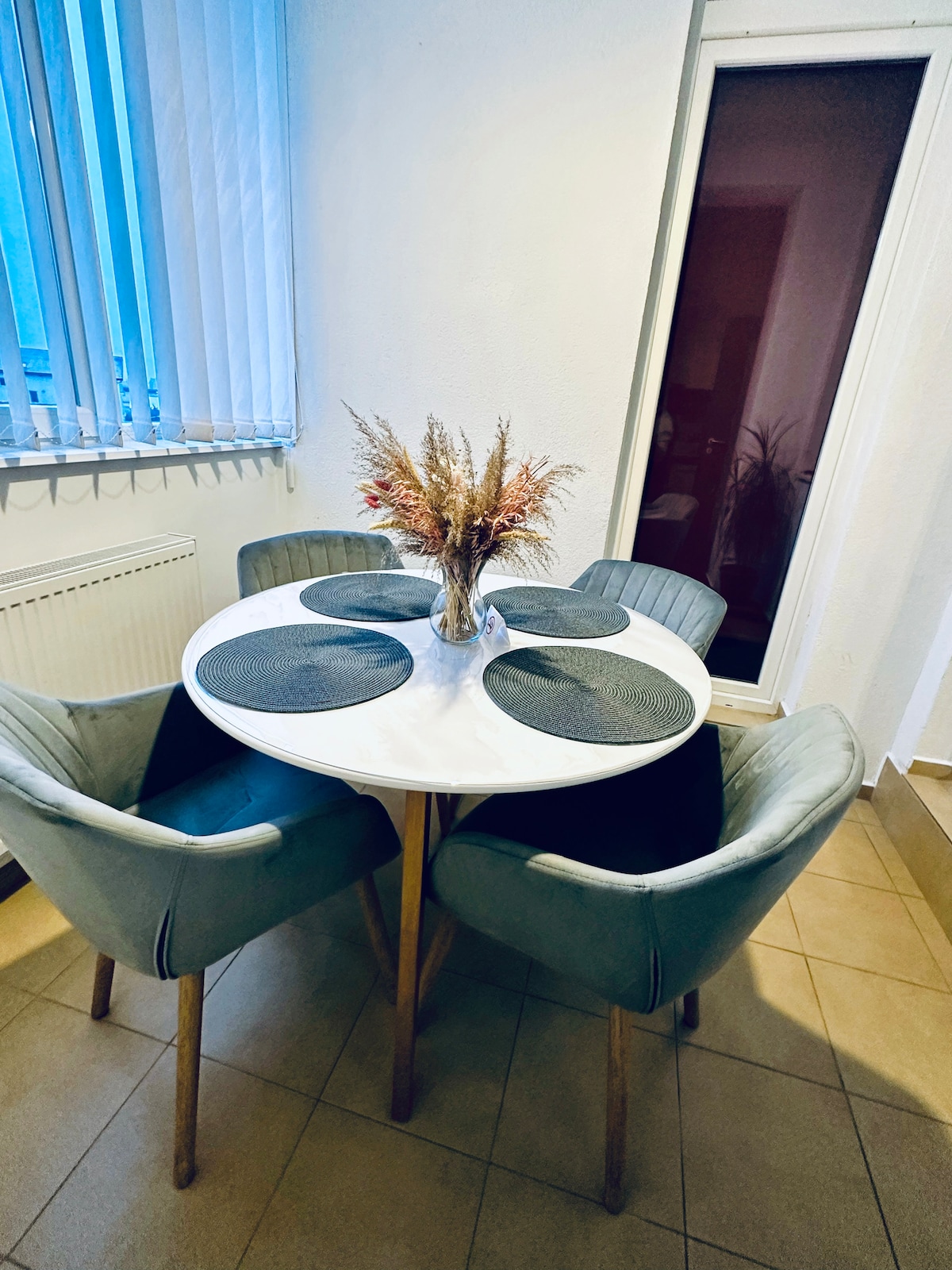 Apartament situat într-o zonă liniștită, la 10 min de centrul orașului, 7 min de aeroport și 10 min de autostradă. Se află la 5 min de stația de autobuz. În cadrul cartierului găsești și o zonă comercială: Profi, TransAgape și parc de copii, un loc de joacă de interior. Parcarea este gratuită.