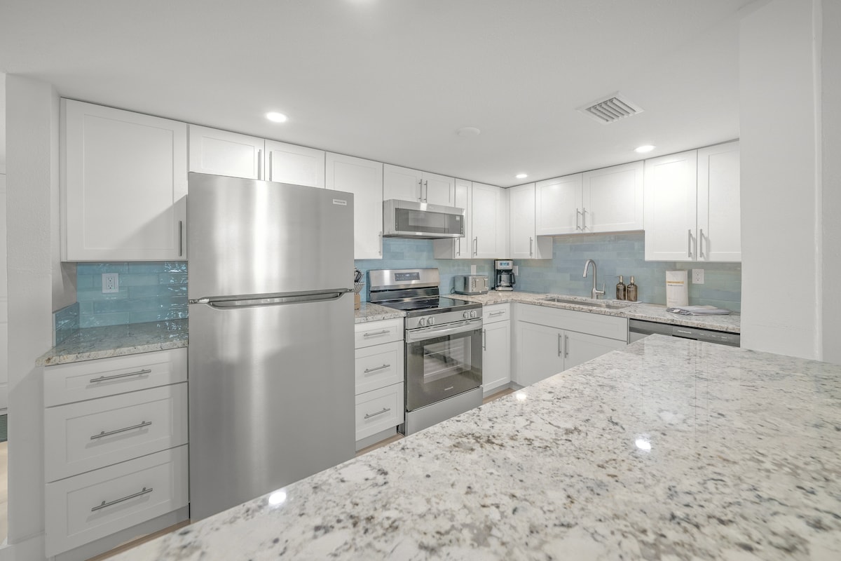 Unwind in this spacious 4BR/2BA Siesta Key getaway, set on a quiet street steps from gated, private beach entry. Enjoy a resort-style shared pool when you're not at the shore, then head out to Siesta Key Village restaurants, shops, and the island's top attractions. ✔ 4 Bedrooms (Sleeps 10) ✔ Private Beach Access ✔ Open Design Living ✔ Renovated Chef's Kitchen ✔ Private Patio & Shared Outdoors (Pool, BBQ, Games, Fire Pit, Lounges) ✔ Smart TVs ✔ Wi-Fi ✔ Laundry ✔ Parking Learn more below!