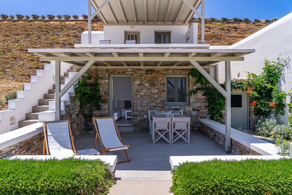 I nostri appartamenti sono un complesso di case tradizionali completamente arredate, costruite con amore e rispetto per le tradizioni e l'architettura delle Cicladi. Tutti i nostri monolocali hanno balconi dove puoi goderti la vista sul Mar Egeo e sui piccoli villaggi. La nostra calda ospitalità e le nostre prelibatezze fatte in casa ti faranno divertire.