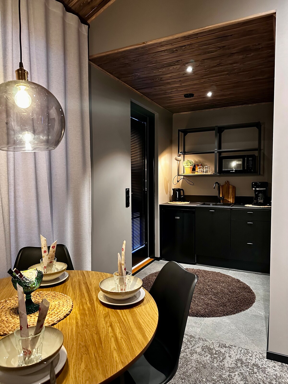 Appartamento unico e caldo in terra con ingresso privato, camera da letto, zona pranzo, sauna, doccia e servizi igienici. Per chi soggiorna 2 notti, la vasca idromassaggio è inclusa nel soggiorno per 2 ore al giorno. In caso contrario, l'affitto è durante il soggiorno durante la settimana dom-gio 35e/2h e ven-sab 49e/2h. Situato in una nuova zona residenziale vicino alla natura, a breve distanza. Letto matrimoniale queen size di alta qualità, divano letto da 120 cm e possibilità di letto di ricambio da 90 cm. Tastierino. Parcheggio gratuito.
