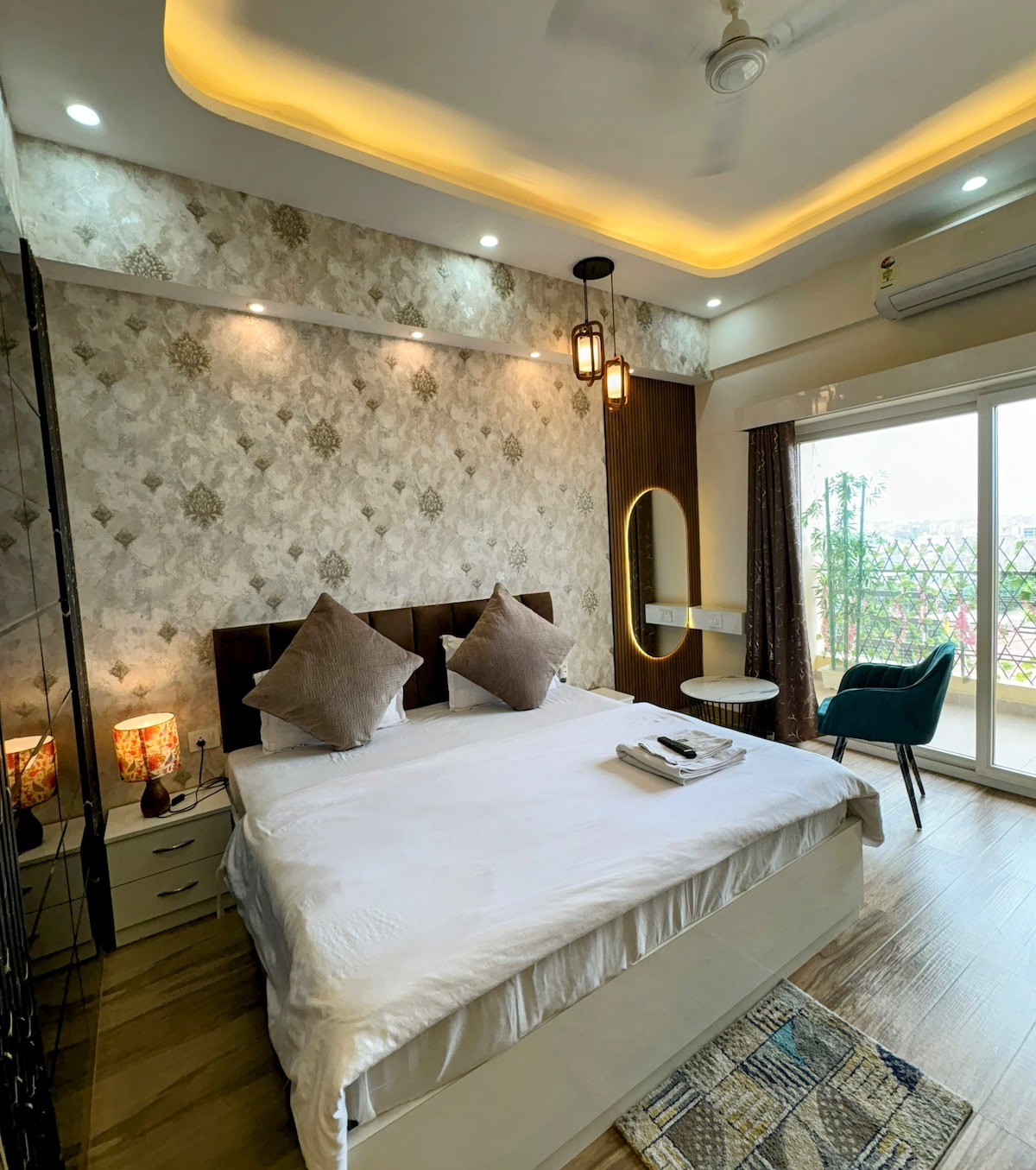 Welcome to Trovero Suites Nestled in the heart of Greater Noida, Near Expo Mart (8 km) ✨ What You’ll Love: ✔ Private Balcony – Enjoy the Mesmerizing scenic view ✔ Prime Location – Close to top attractions, restaurants ✔ Modern Comfort – A beautifully furnished space with a comfy bed, cozy seating, and stylish decor. ✔ Fully Equipped Kitchen – Cook your favorite meals with ease. ✔ Fast WiFi & Smart TV – Stay connected and entertained. ✔ Serene Ambiance – A peaceful Luxurious and private retreat
