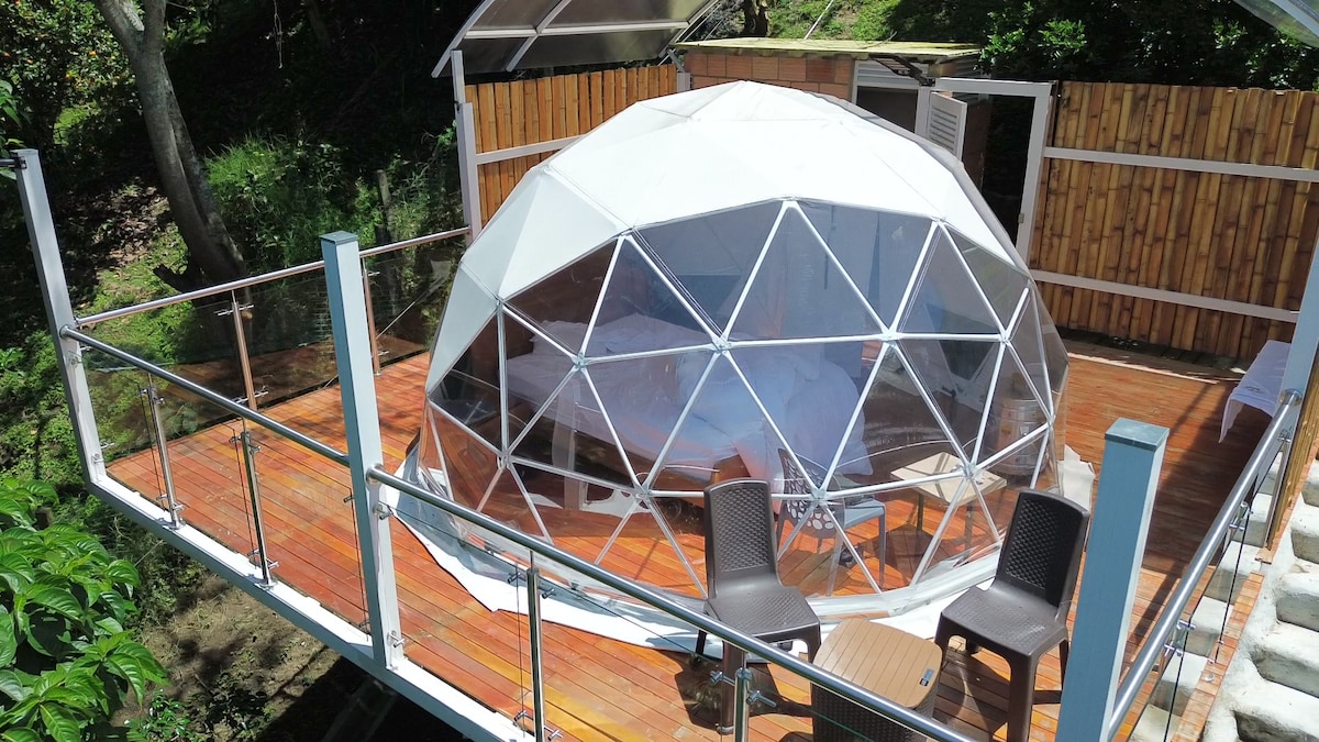 Il Wallaby Glamping è un posto in mezzo alla natura dove accamparsi sotto le stelle con il comfort che meriti a soli 40 minuti dall'uscita sud di Bogotá. Vieni a conoscere la nostra vera e propria cupola con vasca idromassaggio, bagno rustico dove puoi fare una doccia sotto il cielo; delizia il suono del piccolo torrente che ti è vicino mentre hai la vista sulle montagne nel bel mezzo della nostra coltivazione dell'avocado. Cerchiamo di essere complicati nelle tue occasioni speciali, come anniversari o compleanni.