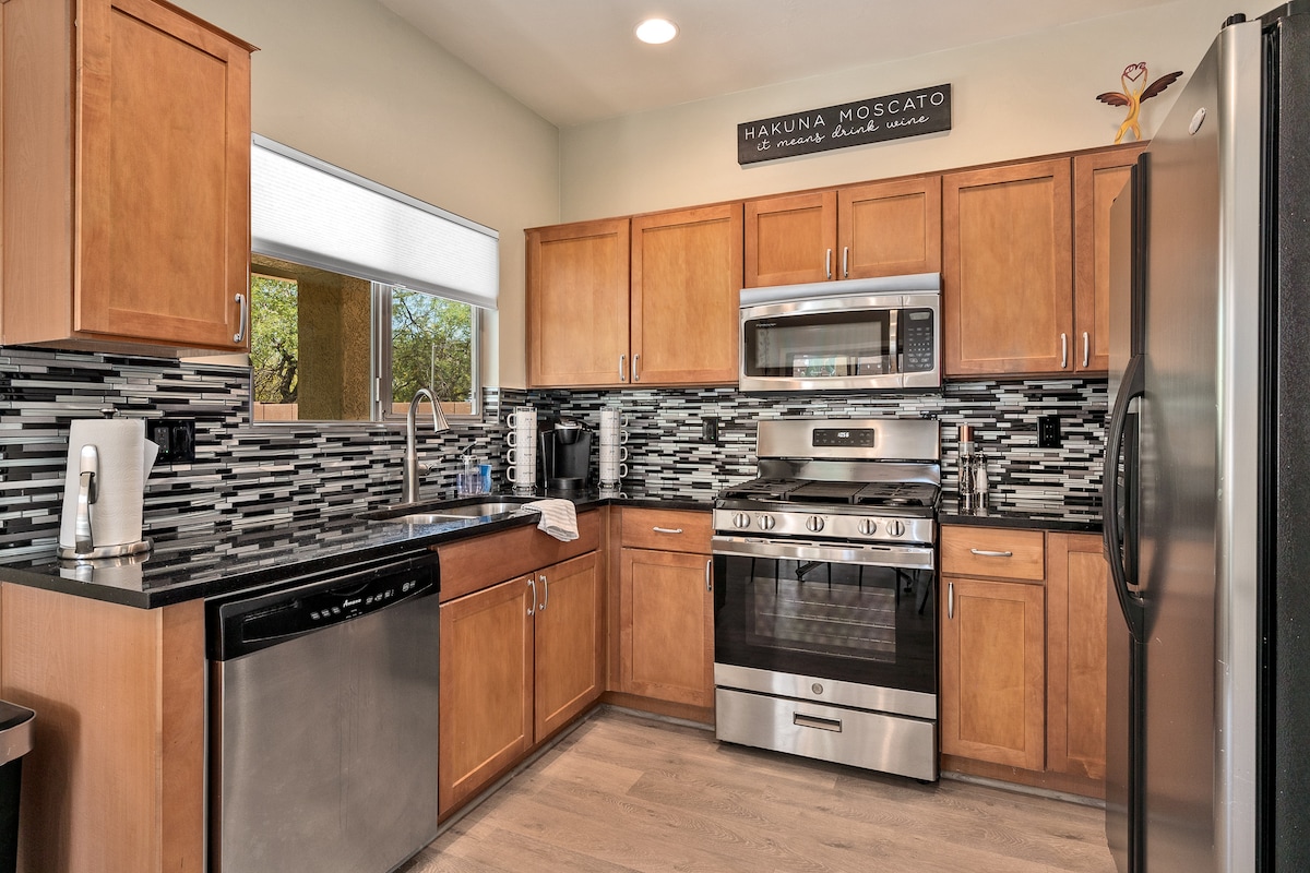 Enjoy a tranquil retreat with the entire family in this peaceful neighborhood. Conveniently located just 10 minutes from downtown Tucson and 8 minutes from I-10. Close proximity to a grocery store and shopping centers ensures a comfortable stay. Experience the ease of keyless entry with a pre-arrival code. Immerse yourself in nature by exploring the walking paths available within the neighborhood. Please note, large gatherings and parties are not permitted. Enjoy your stay with us.