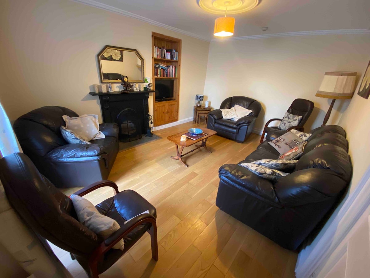 Ci troviamo in una tranquilla campagna rurale a 3 minuti (in auto) dalla città di Newport, a 12 minuti dall'Università di Limerick/Castletroy, a 15 minuti dal centro di Limerick e a 40 minuti dall'aeroporto di Shannon. La nostra casa è meglio descritta come: - 1 camera matrimoniale con bagno privato adiacente - 1 camera matrimoniale - 1 bagno al piano terra - 1 camera singola (al piano superiore) - 1 WC al piano superiore - 1 cucina - 1 sala da pranzo/soggiorno -1 spazio di lavoro dedicato - Tutti i comfort moderni disponibili - Parcheggio gratuito e sicuro in loco.