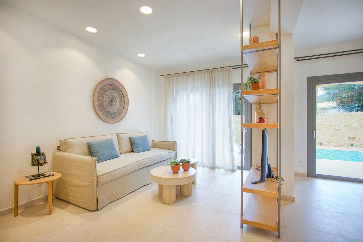 La nostra Villa Estia (92 m²) si trova direttamente nella meravigliosa Paleokastrista. La vista sul mare della baia di Platakia e sul porto di Alipa rendono questa casa un luogo speciale. Due bagni, due camere da letto, una moderna cucina a vista completamente attrezzata e un soggiorno con angolo pranzo e caminetto, tutti nuovi del 2018, garantiscono il massimo comfort per il tuo soggiorno. La casa è per 4-6 persone. Il divano letto può essere utilizzato per altre 2 persone.