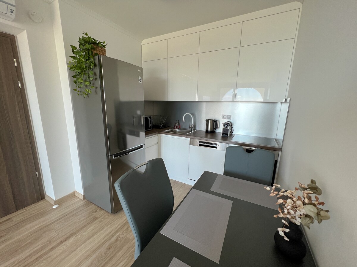 Siófok offre alloggi all'ottavo piano del condominio Cruising sulla riva del lago Balaton. L'appartamento è dotato di aria condizionata, WiFi gratuito e parcheggio privato in loco. L'appartamento dispone di 1 soggiorno e 1 angolo cottura completamente attrezzato, 1 camera da letto, 1 bagno con doccia e balcone panoramico con vista sul lago Balaton. Forniamo un asciugamano per i nostri cari ospiti. Il giardino del condominio ha anche un parco giochi, un parco fitness all'aperto e un buffet. L'appartamento è situato in una zona tranquilla di Siófok.