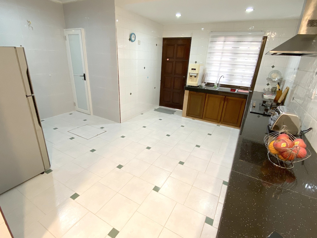 Un ottimo posto per una riunione di famiglia con WiFi, Netflix e cucina completamente attrezzata con filtro dell'acqua e lavanderia con asciugatrice, area sul tetto per guardare le stelle e un set per barbecue a noleggio. Pur trovandosi all'interno della città di Ipoh, è un luogo molto tranquillo per il relax. Servizi come ristoranti, centri alimentari, banche, cliniche, farmacie, chiesa, moschea, distributore di benzina e una piscina pubblica si trovano a meno di 500 metri. Nessun costo aggiuntivo per la pulizia e gli ospiti in più.