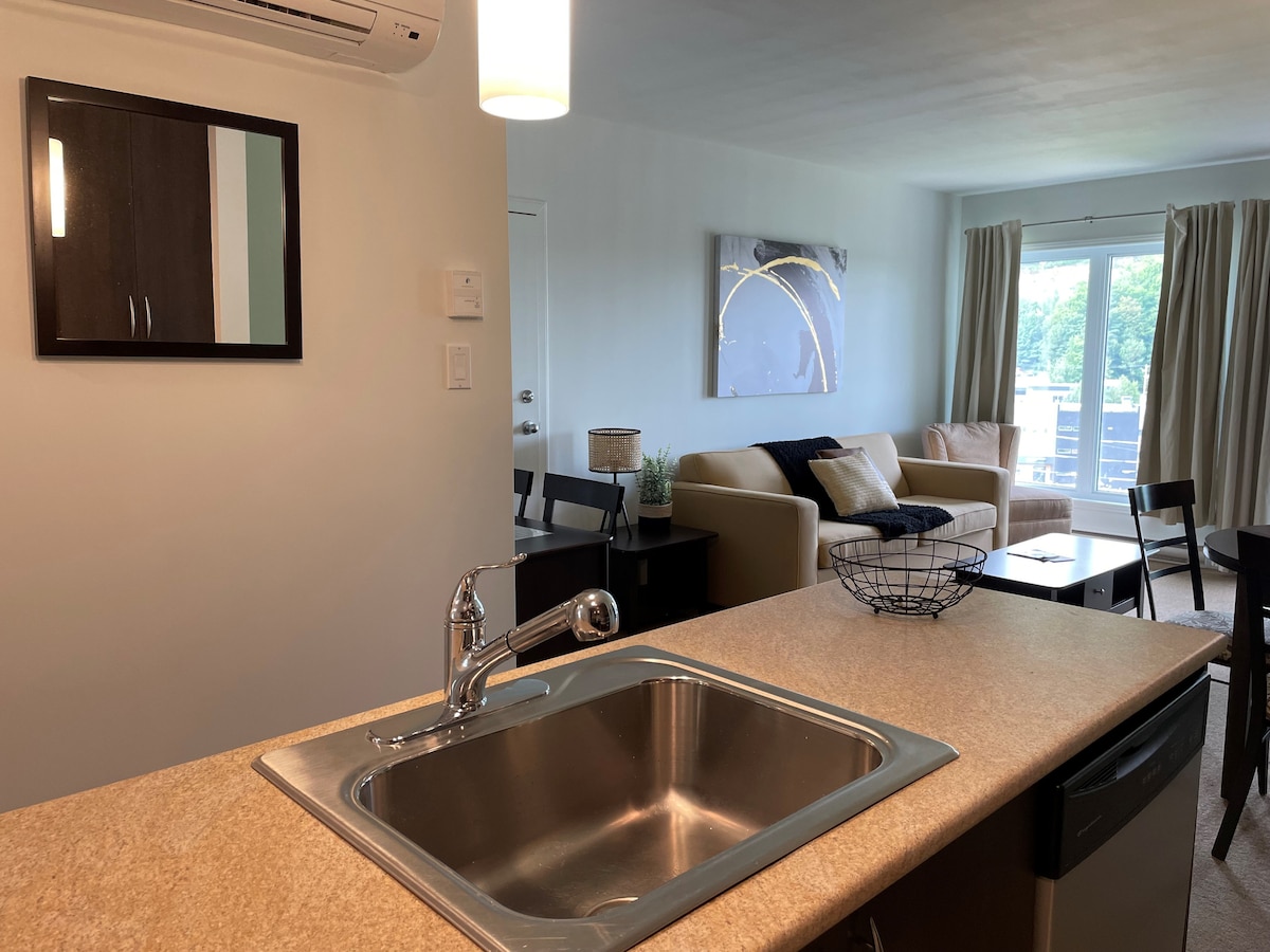 Venite a godere della bella regione dei Cantons de l'Est e delle sue numerose attività all'aperto o venite a staccare dalla città lavorando in un ambiente incantevole! 🔨 Appartamento ristrutturato nel 2023 🚦 5 minuti dal centro della città di Magog 🏔 7 minuti dal Mont-Orford ☕️ Macchina Espresso con caffè fornito 🖥 Internet ad alta velocità (telelavoro) ✏️ Spazio ufficio per telelavoro 🍽 Cucina interamente attrezzata 👶 Box per bambini, seggiolone, giocattoli