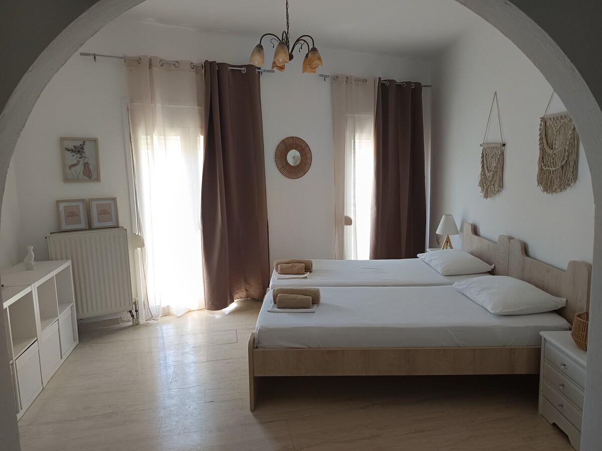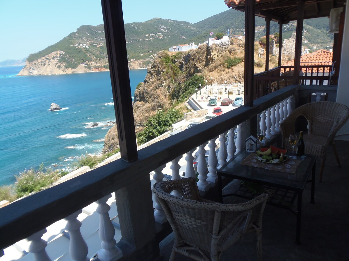 Abbiamo restaurato questa vecchia abitazione con grande cura e rispetto con l'obiettivo di non "travolgere" la sua storia e il suo fascino. I 2 piani sono stati trasformati in un funzionale appartamento di 70 m ² con ingresso privato e ampia veranda. Semplice ma elegante, può ospitare visitatori con interesse per la cultura di un luogo espresso dall'artigianato locale; e sarà un grande piacere per noi aiutarli a scoprire Skopelos nel miglior modo possibile.