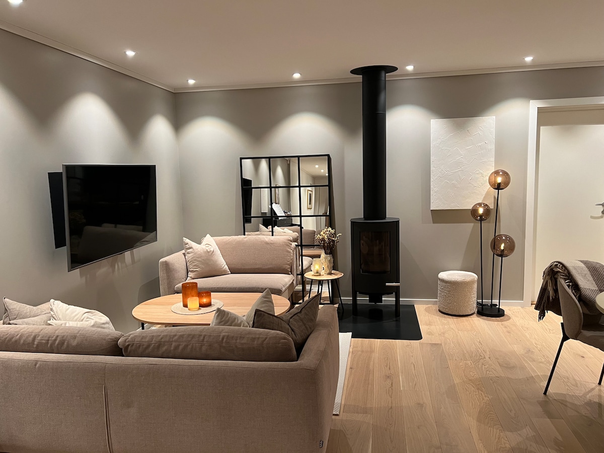 Appartamento al 1° piano, con un buon spazio sia all'esterno che all'interno! L'appartamento è di 80 m², ha la maggior parte di ciò di cui hai bisogno ed è bello e spazioso. Situato nel mezzo di Skien e Porsgrunn. A 100 m dalla fermata dell'autobus, a 300 m dai negozi e con ottime possibilità di parcheggio. La casa si trova alla fine di una strada senza uscita e ha pochissimo traffico. Puoi parcheggiare proprio davanti alla porta d'ingresso e il caricatore per auto elettriche (tipo 2) è pronto all'uso. Serratura a codice sulla porta per un facile accesso. L'appartamento è dotato di pompa di calore e riscaldamento a pavimento.