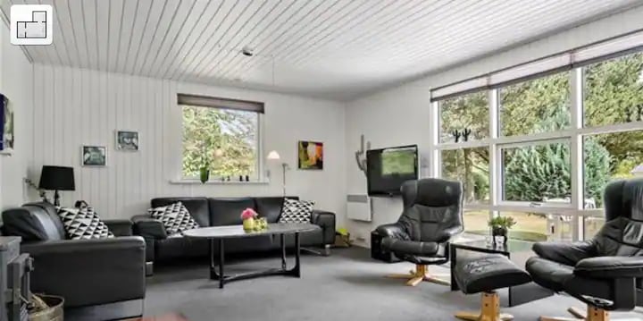 Visita questa idilliaca casa estiva in legno completamente ristrutturata con una meravigliosa atmosfera. Situata in una grande area boschiva collinata a Skuldbøl. Un posto bello e tranquillo, con un ambiente naturale e una ricca fauna selvatica. Nuova grande terrazza coperta in mezzo al bosco. A 8 minuti a piedi dall'aria fresca del fiordo di Ringkøbing. La casa di charme offre la bellezza della natura all'interno, ed è un arredamento luminoso che invita a trascorrere una vacanza piacevole e rilassante. Qui c'è pace e atmosfera sulle splendide terrazze.