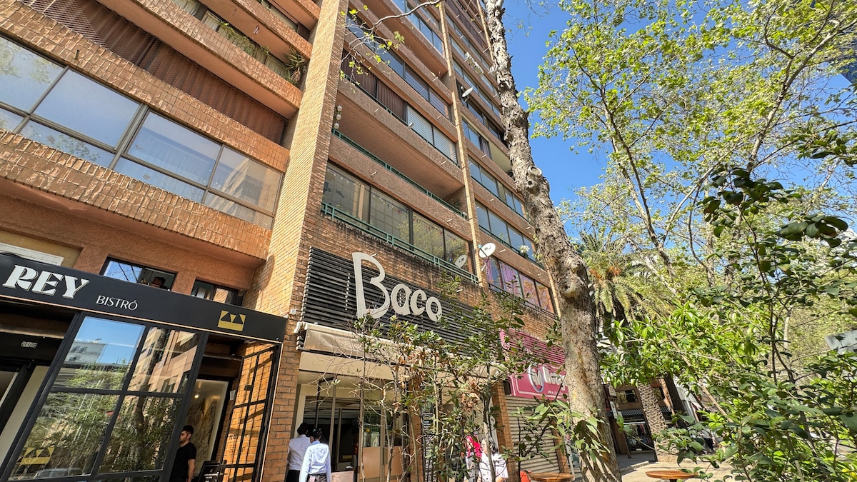 Questo posto ha una posizione strategica: sarà molto facile pianificare la tua visita! Moderno appartamento, situato all'uscita della metropolitana Manuel Montt, Providencia, nel quartiere gastronomico di Providencia. La camera da letto dispone di un letto molto comodo a 2 piazze, con biancheria da letto di alta qualità, oltre a una TV da 42 pollici, con connessione internet e Netflix. La cucina completamente attrezzata. Arrivo autonomo.