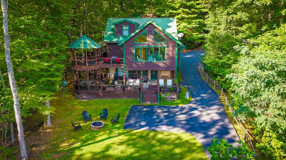 Non siamo stati colpiti da TS Helene. Vieni a visitare lo Skyfall Lodge nella splendida Sky Valley, in Georgia! Goditi la brezza fresca di 3.200 piedi sul livello del mare! La nostra spaziosa casa dispone di due master suite di cui una sui gradini principale e pochi gradini per chi ha bisogno di un facile accesso. Goditi il nostro portico schermato, rilassati nel focolare o immergiti nella nostra vasca idromassaggio (* le spese di pulizia includono la manutenzione della vasca idromassaggio). Offriamo anche agli ospiti l'accesso alla piscina, alla sauna, al centro tennis e fitness + al campo da golf pubblico (non incluso), al laghetto e al parco.