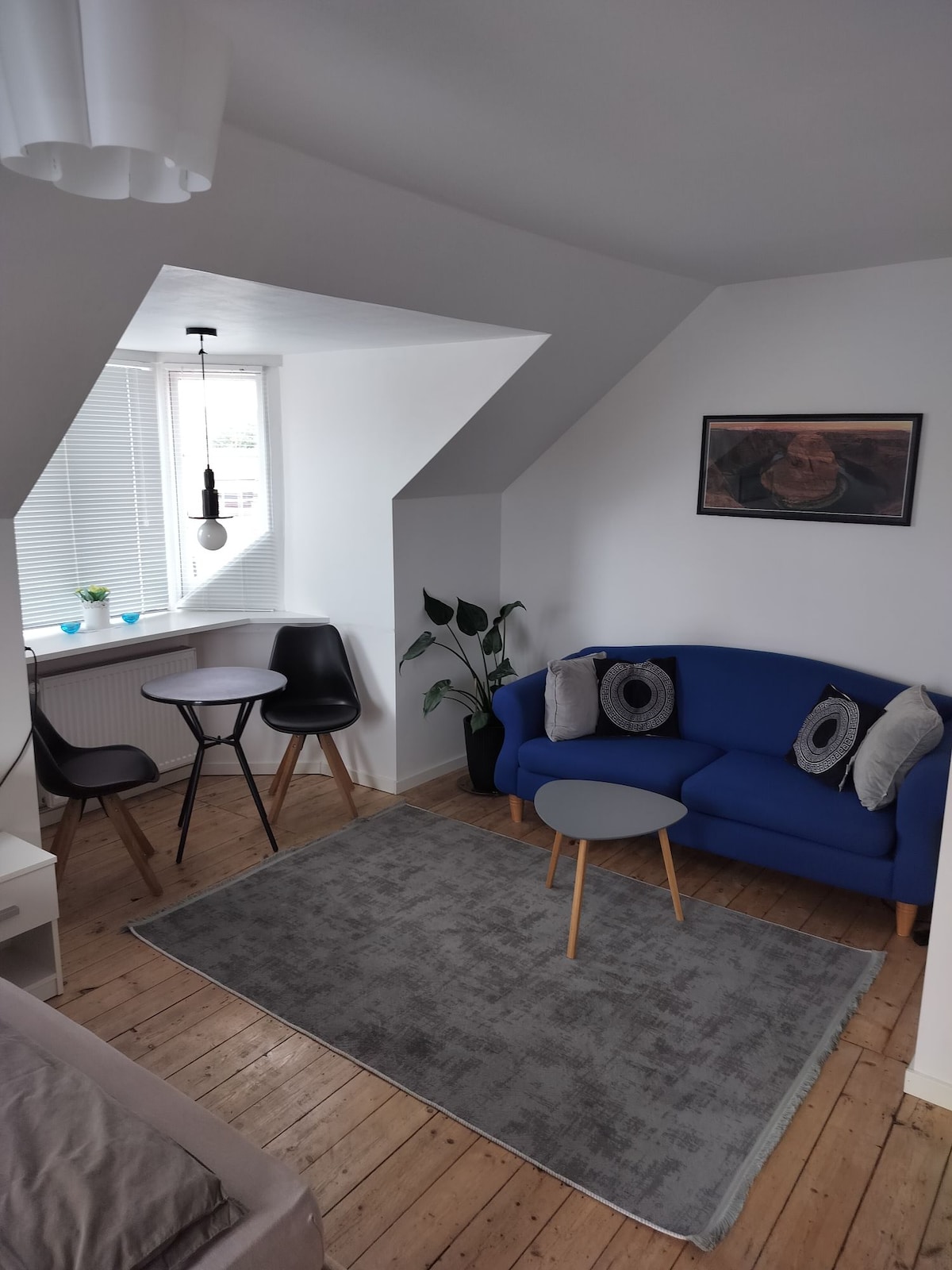 Grazioso monolocale con terrazza privata esposta a sud. L'appartamento è stato completamente ristrutturato nel 2022 con nuove finestre, pavimenti con riscaldamento a pavimento, nuova cucina e bagno con doccia e lavatrice. L'appartamento è luminoso e accogliente a pochi passi da tutto e a soli 750 metri dalla Stazione di Slagelse. Giardino condiviso simile a un parco ad uso dei 7 appartamenti della proprietà. Parcheggio gratuito disponibile in strada. L'appartamento viene affittato con tutti gli infissi della cucina e degli elettrodomestici nonché di vari beni di prima necessità. Il soggiorno minimo è di 28 giorni.