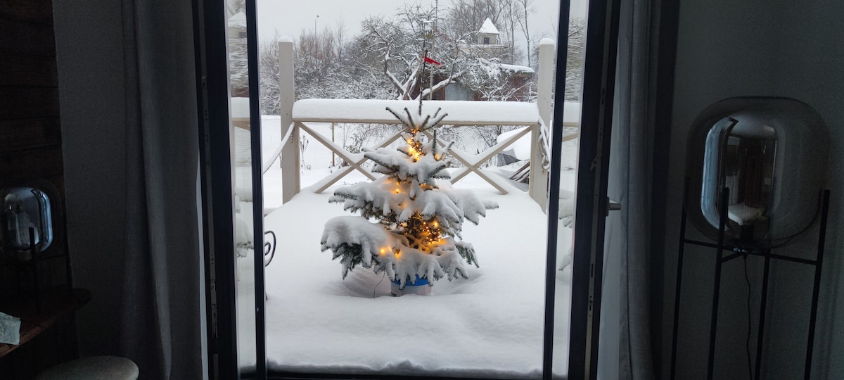 Rilassati vicino al tranquillo lago Valgums. Immerso nel Parco nazionale di Kemeri, lo spazio è perfetto per gli amanti della natura e offre attrazioni di scoiattoli giocosi e diverse specie di uccelli direttamente da casa tua. La casa è progettata per il massimo comfort, con pavimenti riscaldati e un caminetto interno per l'intimità tutto l'anno. La cucina completamente attrezzata semplifica la preparazione dei pasti e puoi iniziare la giornata con una tazza di caffè perfetta.