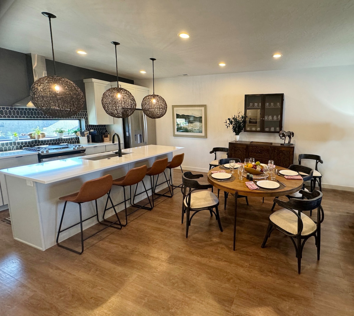 Welcome to The Mountain Vista Estate — a stunning 6,000+ sq ft getaway in Morgan, Utah, perfect for large groups and family escapes. This beautifully updated 6-bed, 4-bath home features panoramic mountain views, two full kitchens, cozy gathering spaces with a fireplace, and easy self-check-in. Minutes to Snowbasin Ski Resort, Wolf Mountain, Powder Mountain, and just 30 minutes to Park City — adventure awaits year-round. Experience comfort, space, and scenic beauty all in one unforgettable stay.