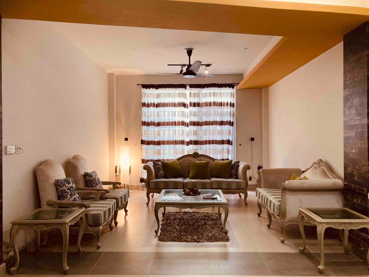 Situato nel cuore di Islamabad, a pochi passi da F-7 Markaz, F-6 Markaz e Blue Area. Composto da un ampio salone, una zona pranzo e una cucina completamente attrezzata, nonché bagni privati in ciascuna delle due camere da letto. Giardino privato sul retro, aperto e spazioso! Internet Wi-Fi ad alta velocità + TV Nayatel (intrattenimento britannico/americano/pakistano/film on-demand, sport in diretta, notizie) tutto incluso. Ideale per i visitatori internazionali della nostra fantastica città!!